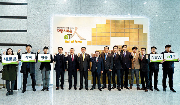 한국농수산식품유통공사(aT, 사장 김재수)는 지난 2일 본사에서 우수 성과를 창출한 직원들의 자긍심을 고취하고, 조직 내 혁신 마인드 확산을 위해 ‘자랑스러운 aT인(명예의 전당)’동판을 설치하고 현판식을 가졌다.〈사진〉