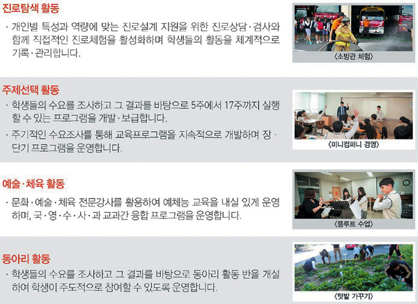학생들의 흥미와 관심사를 반영한 여러가지 전문 프로그램 운영으로 학습동기 유발