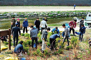 이날 회원들은 지난해 백제문화제를 앞두고 꽃동산을 조성한 제민천변에서 쓰레기를 줍고, 연산홍과 회양목을 심어 공주를 찾는 관광객들과 공주시민들의 눈과 코를 즐겁게 했다.