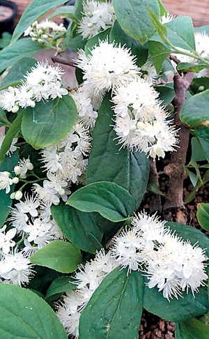 꽃은 5월에 피는데 향기가 난다. 새로 나온 가지 끝에 원추꽃차례를 이룬다. 꽃받침과 화관은 5갈래로 갈라지며 꽃잎은 긴 타원형으로 수술이 여러 개다. 꽃말은 ‘동의’이다. 열매는 9월에 짙은 파란색으로 익는데 타원형이다.
