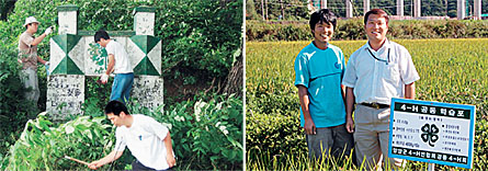 양양군4-H연합회는 영농회원 뿐만 아니라 일반회원으로 활동하고 있는 회원들이 많다. 연합회에서 운영하는 학습과제포는 일반회원에게는 더없이 좋은 체험학습장이다. 작년에는 고구마를 심었고 올해는 수도작을 2000평 하고 있는데, 농사를 짓지 않은 일반회원들의 호응이 아주 좋다고. 육묘부터 이앙, 병해충 방제, 수확까지 모두 회원들이 직접 하기 때문에 힘들어하면서도 수확할 때면 모두가 보람을 느낀단다. 올해에는 마을 입구에 있는 4-H 상징물들을 도색하고 깨끗이 단장하는 등 보수작업을 대대적으로 실시하고 있다.