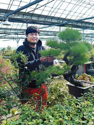 자연의 정취를 작은 분에 축소시켜 사람들의 마음을 감동시키는 젊은이를 만났다. 김병겸 고양시4-H연합회장(27·고양시 덕양구 원당동 1262)은 경기도4-H연합회 과제부장도 맡고 있으며, 현재 3000여㎡ 6연동 하우스에 20여종의 분재를 가꾸고 있다.