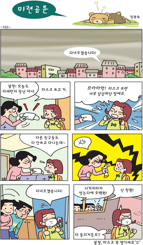 [미련곰툰 155] 봄철, 마스크 꼭 챙기세요^0^