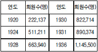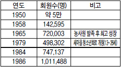 주1) 1967년 회원연령 10~20세를 13~24세로 조정, 회원수 증가