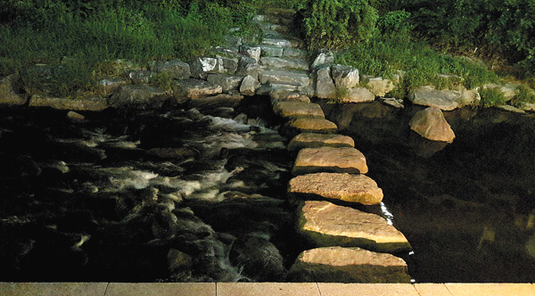 가로등 불빛이 징검돌을 따스하게 어루만져 주고 있었다.
