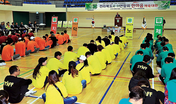 전라북도4-H연합회(회장 이명철)는 지난 12일 무주 국민체육센터에서 청년4-H회원 및 관계관 등 140여명이 참가한 가운데 ‘2017 전라북도4-H연합회 한마음체육대회’를 개최했다.〈사진〉