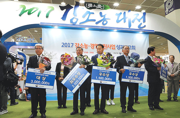 경상북도농업기술원(원장 곽영호)이 지난 25일 서울 코엑스에서 열린 ‘2017 강소농 대전’에서 대상을 수상했다. 이로써 경북도농업기술원은 지난해 최우수상에 이어 올해에는 최고상인 대상의 영광을 얻게 돼 2년 연속 강소농 육성부문에서 두각을 나타냈다.