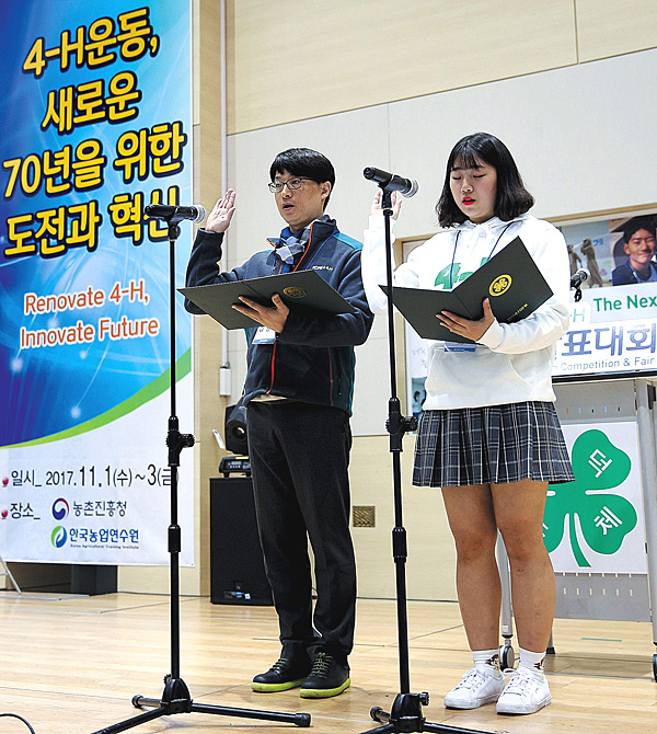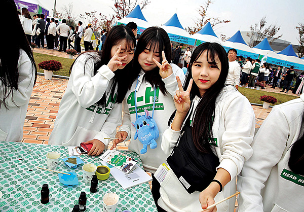 | 11월 1일 ‘세계4-H의 날’을 기념해 ‘4-H’를 표현하는 회원들의 표정에서 4-H의 미래가 보였다. |