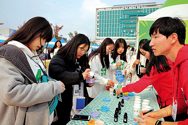 | “소중한 내 피부를 위해 대학4-H연합회 선배님들이 운영하는 부스에서 천연비누 만들기 체험을 했어요.” |