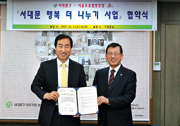 서대문구청에서 진행된 이날 협약식은 서울시 서대문구(구청장 문석진)가 추진하고 있는 ‘서대문 행복 더 나누기’사업에 서울우유협동조합이 우유를 지원하기로 뜻을 모으면서 이뤄졌다.