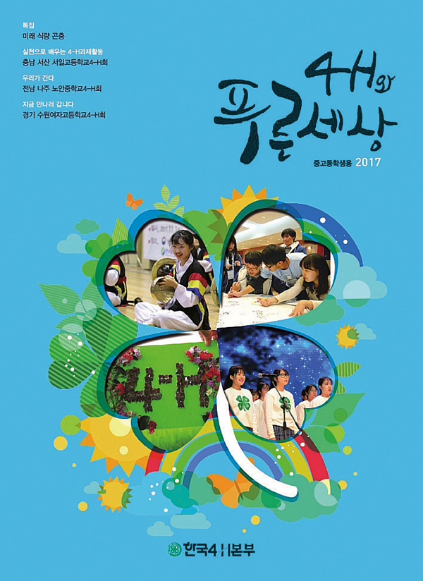 매년 초등학생용과 중·고등학생용으로 제작되고 있는 ‘4-H와 푸른세상’은 이번 호 특집으로 미래 식량자원으로서 곤충의 활용 가능성을 살펴봤다. 이에 관해 국립농업과학원 김미애 박사의 기고문도 함께 실렸다. 환경과 건강을 지키는 농업에 관심을 갖고 실천하자는 의미에서 ‘4-H그린프로그램 워크북’은 푸드마일리지와 로컬푸드의 연관성에 대해 알아보는 지면으로 꾸며졌다.